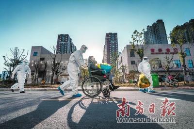 廣東醫(yī)療隊(duì)在湖北荊州洪湖進(jìn)行患者的轉(zhuǎn)運(yùn)工作。南方日?qǐng)?bào)特派記者 董天健 攝