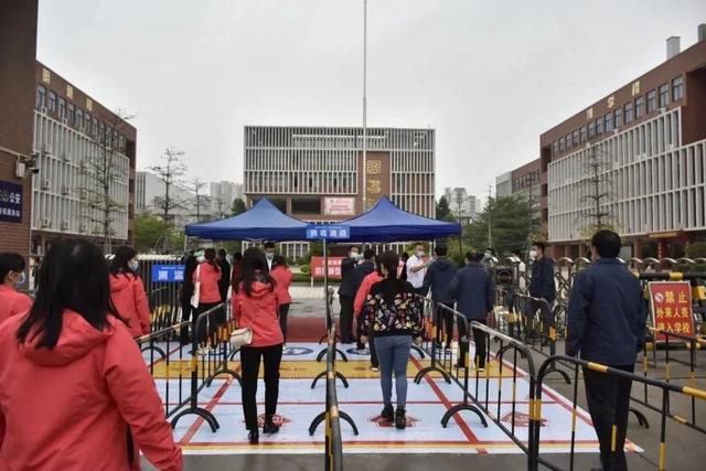 據(jù)了解,該校學生到達門口后需間隔排成3隊,進行體溫監(jiān)測,并實行上下午分流上學制,上午10個班,下午10個班。