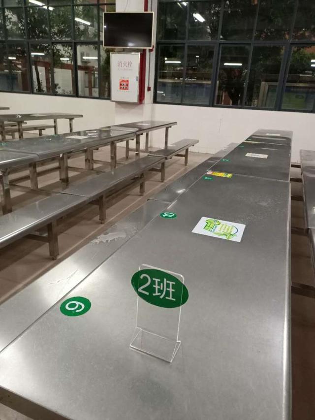 △肇慶市第六中學硯都校區(qū)食堂實施分班分區(qū)域單向隔座用餐。