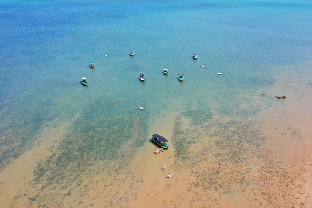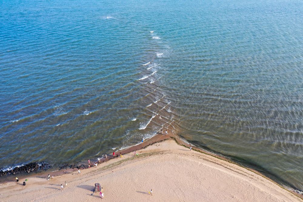 5月28日,游客在“南極村”趕海(無人機(jī)照片)。新華社記者 梁旭 攝