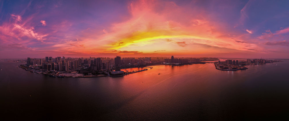 晚霞里的湛江金沙灣(2022年10月17日攝,無人機(jī)照片)。新華社發(fā)(郎樹臣 攝)