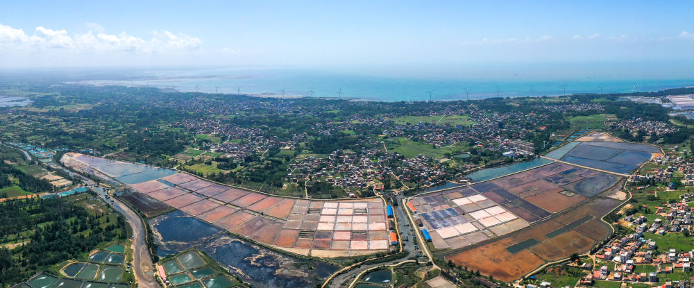 湛江“南極村”的鹽田(5月28日攝,無人機(jī)全景照片)。新華社記者 梁旭 攝