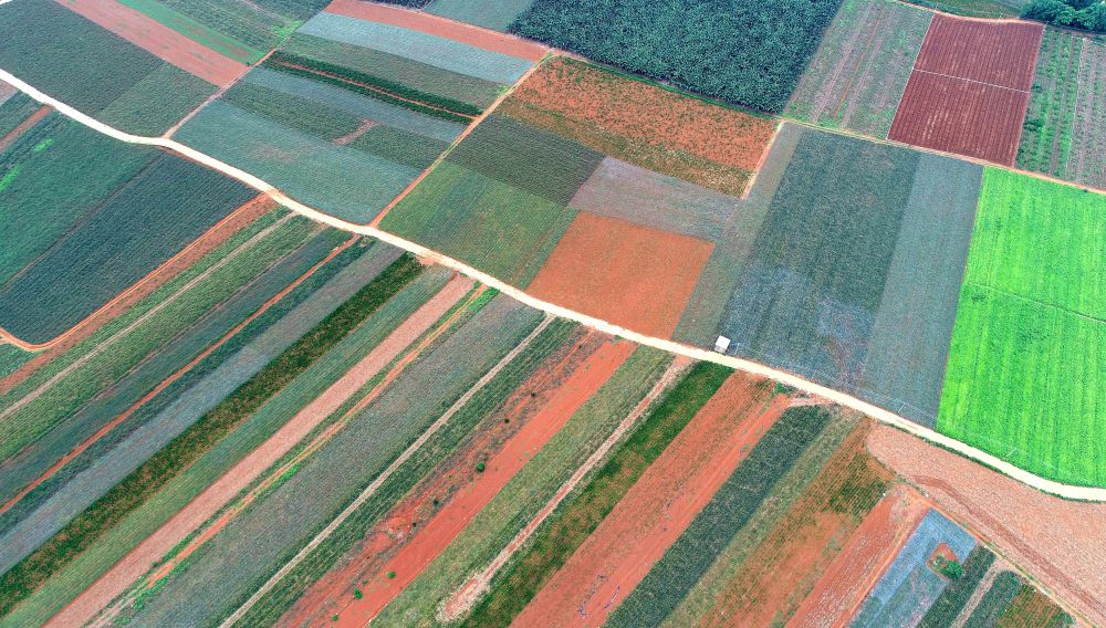 湛江市徐聞縣曲界鎮(zhèn)以菠蘿為主的多種作物農(nóng)田(5月26日攝,無人機(jī)照片)。新華社記者 盧漢欣 攝