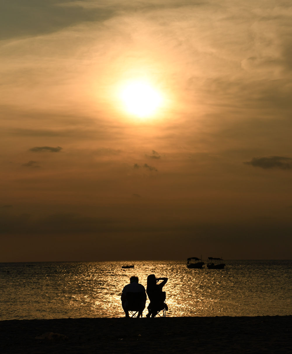 5月27日,游客在“南極村”海邊欣賞夕陽美景。新華社記者 鄧華 攝