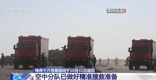 神舟十六號(hào)乘組三名航天員10月31日將返回東風(fēng)著陸場(chǎng),擔(dān)負(fù)搜救回收任務(wù)的空中分隊(duì),將使用5架直升機(jī)開(kāi)展搜救回收任務(wù)。任務(wù)前夕,人員、裝備已經(jīng)進(jìn)行了充分的訓(xùn)練,做好了迎接神舟十六號(hào)乘組返回的準(zhǔn)備。